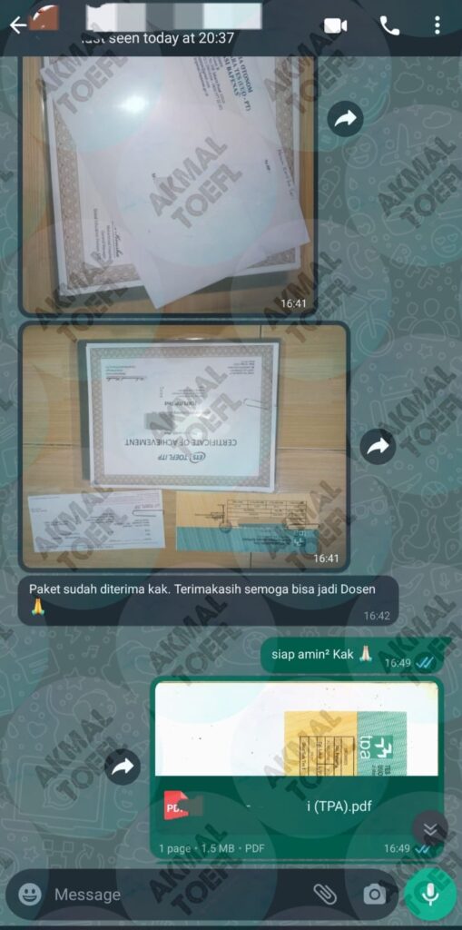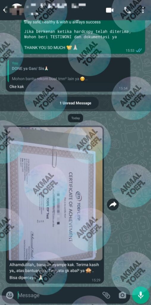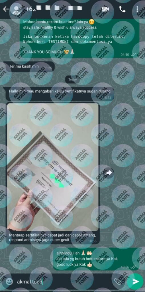 Sertifikat TOEFL yang di Berikan 100% Asli.